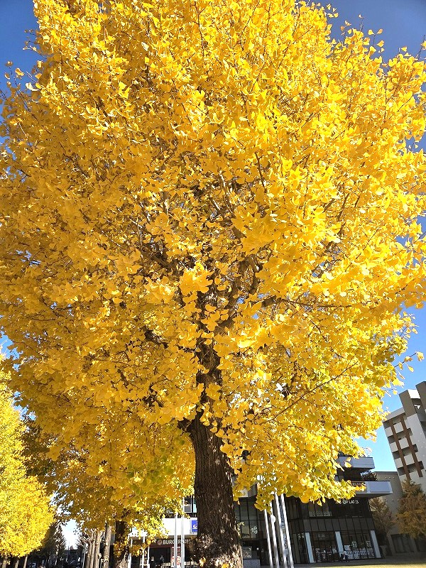 センター北の駅前のイチョウの紅葉が見ごろを迎えています。