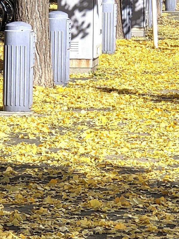 イチョウは、春から夏には青々と茂り、秋には黄金色に輝き、冬に近づく今の季節は、葉を落として黄金色の絨毯が敷き詰められます。