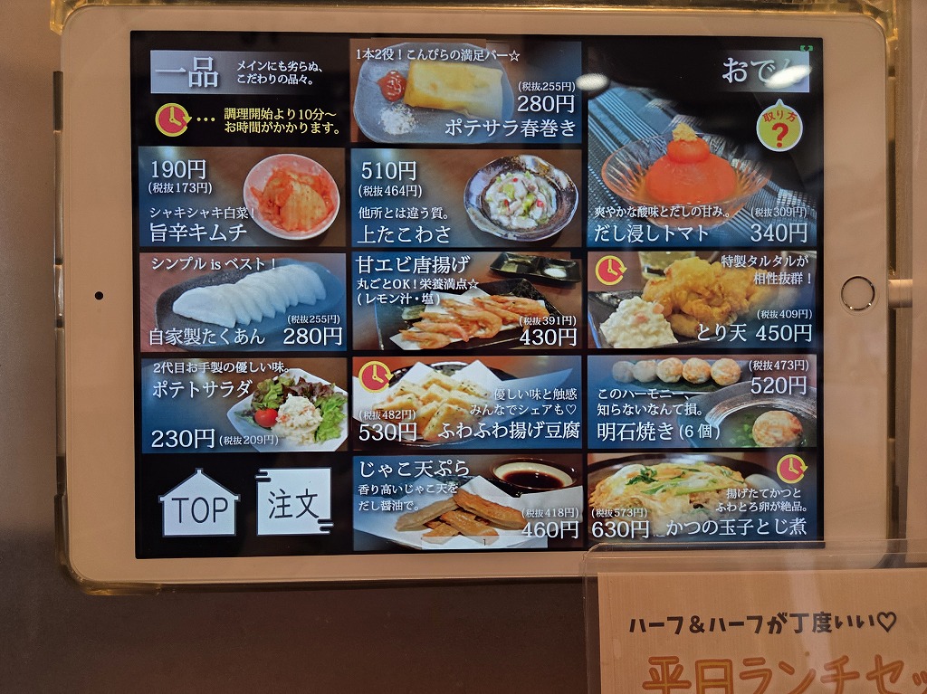 席に着くと、タブレットが置かれていて、注文できるようになっています。